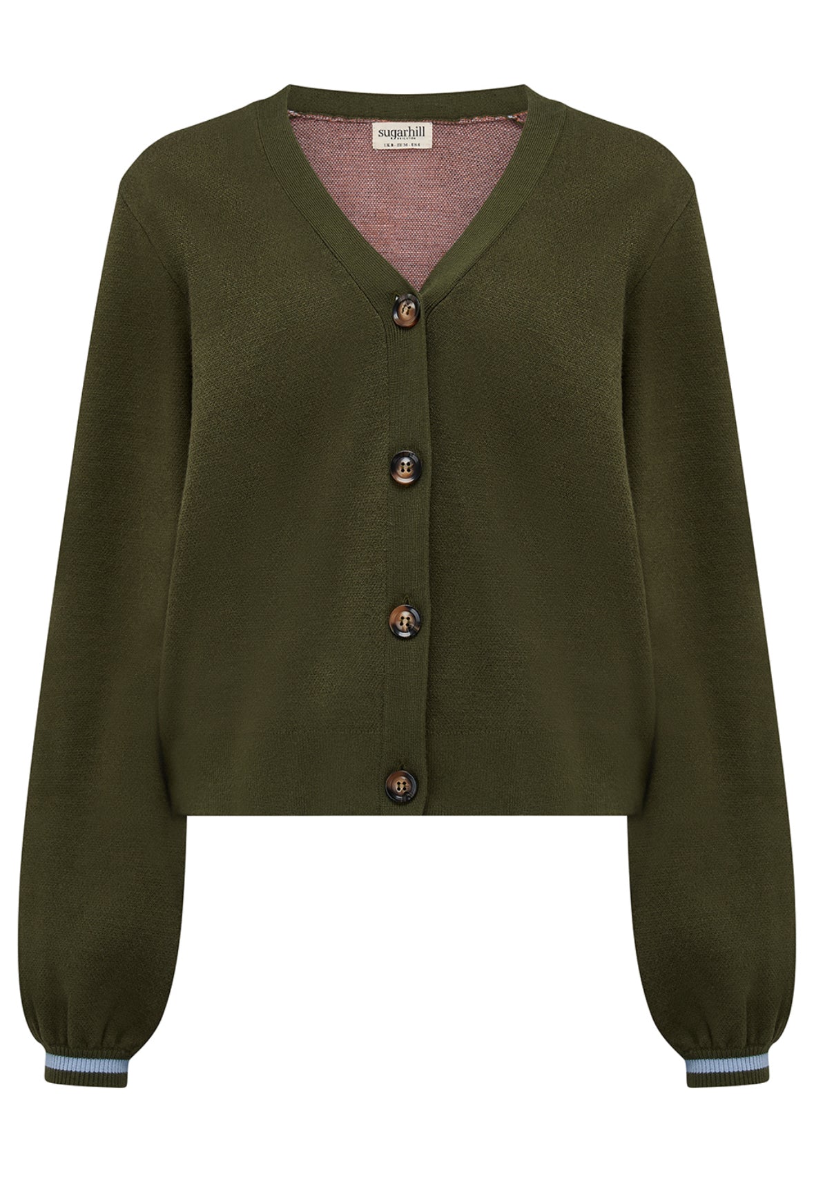 Add a playful twist to your knitwear collection with the Adrian Leopard Jungle Cardigan. Crafted in a soft khaki knit, this Leopard jungle print cardigan features a statement blouson sleeve, a deep V-neckline, and a functional button-front for easy layering. The standout lleopard print includes colourful floral, adding a fun, nostalgic vibe to your everyday look. This lightweight cardigan is the perfect casual layering piece – style it with jeans or a midi skirt for effortless.