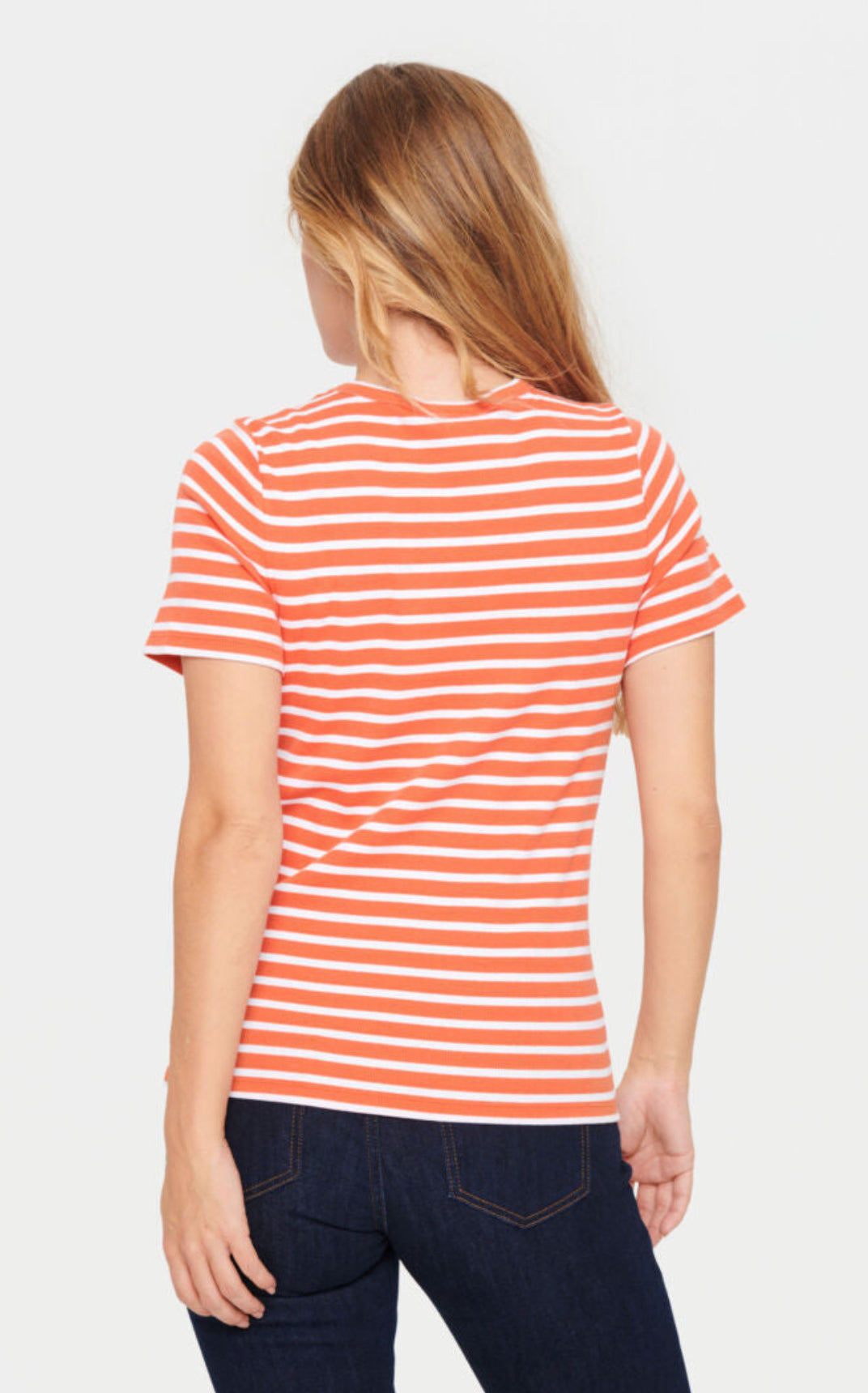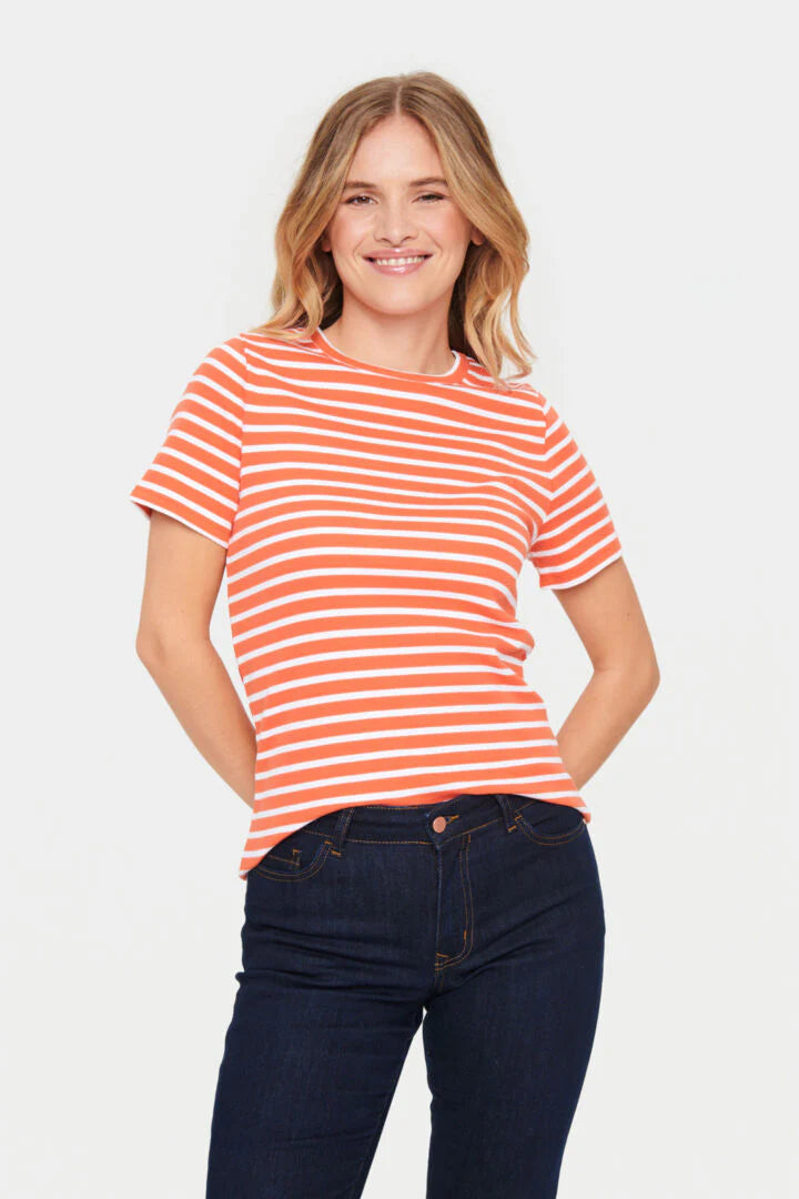Elevate your casual style with our Saint Tropez Asta Stripe Short Sleeve T-Shirt. The crew neck and ribbed cotton top give a slim fit for a cool and versatile look. The classic striped pattern adds a timeless touch, making it a great addition to your wardrobe.