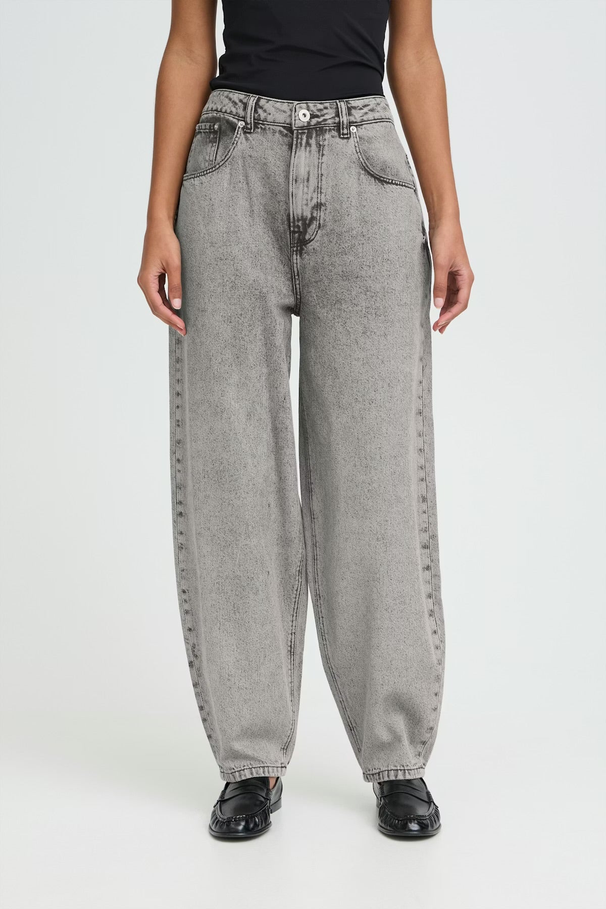 new shape Jean for 2025; these Ichi Berisel jeans are crafted from comfortable denim for a flexible feel. The barrel-leg shape features volume through the legs and a relaxed fit, with a button and zip fastening at the waist. These high waisted jeans come in a soft ruby wine colouring, which compliments this seasons colour palette.
