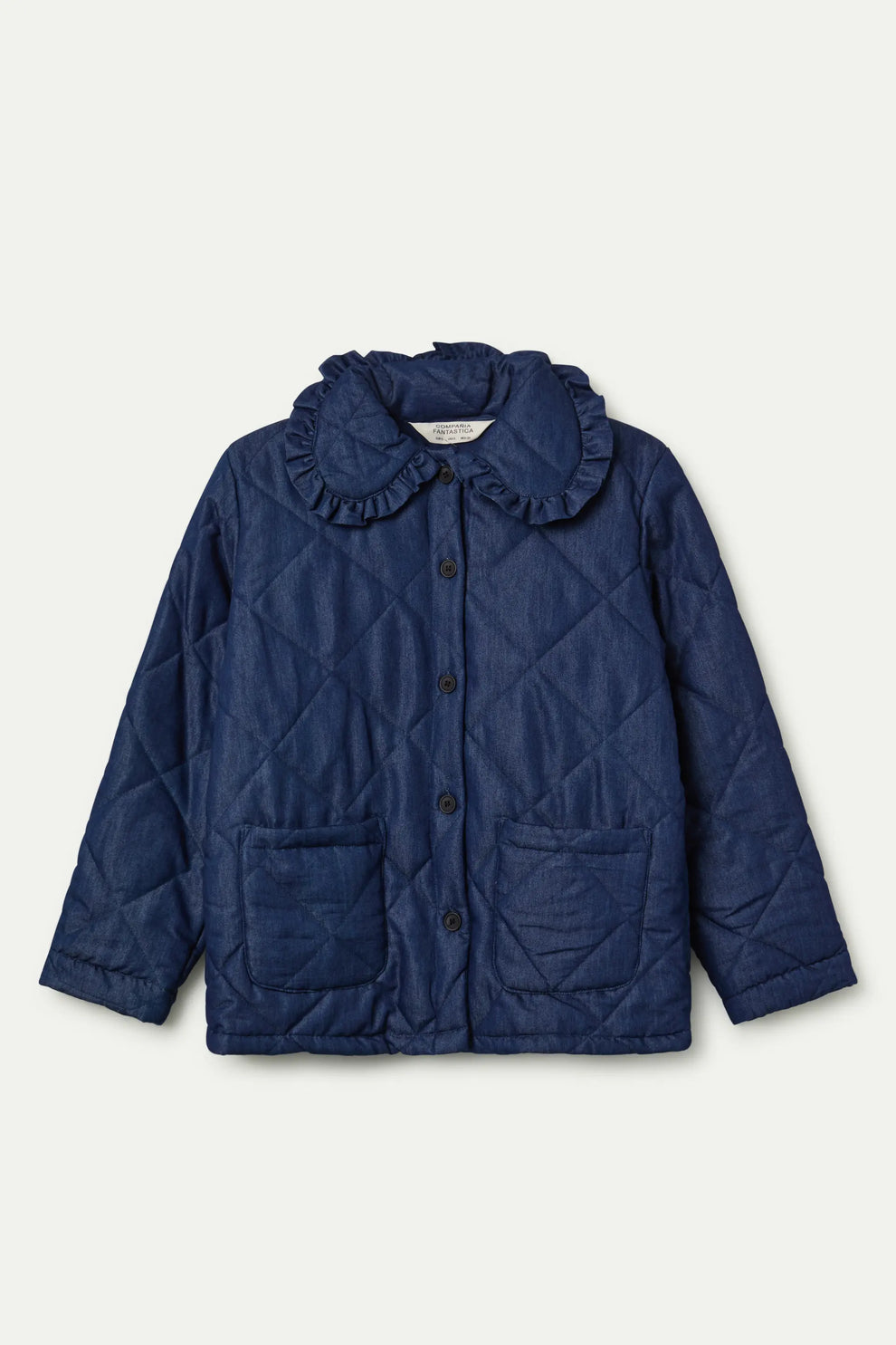 The perfect jacket that will take you through to the cooler months. Introducing the blue Chambray lapel collar jacket by Compania Fantasticia. A padded jacket that is made from 100% cotton chambray, that features a lapel collar with slight ruffle detailing, along with front button closure.