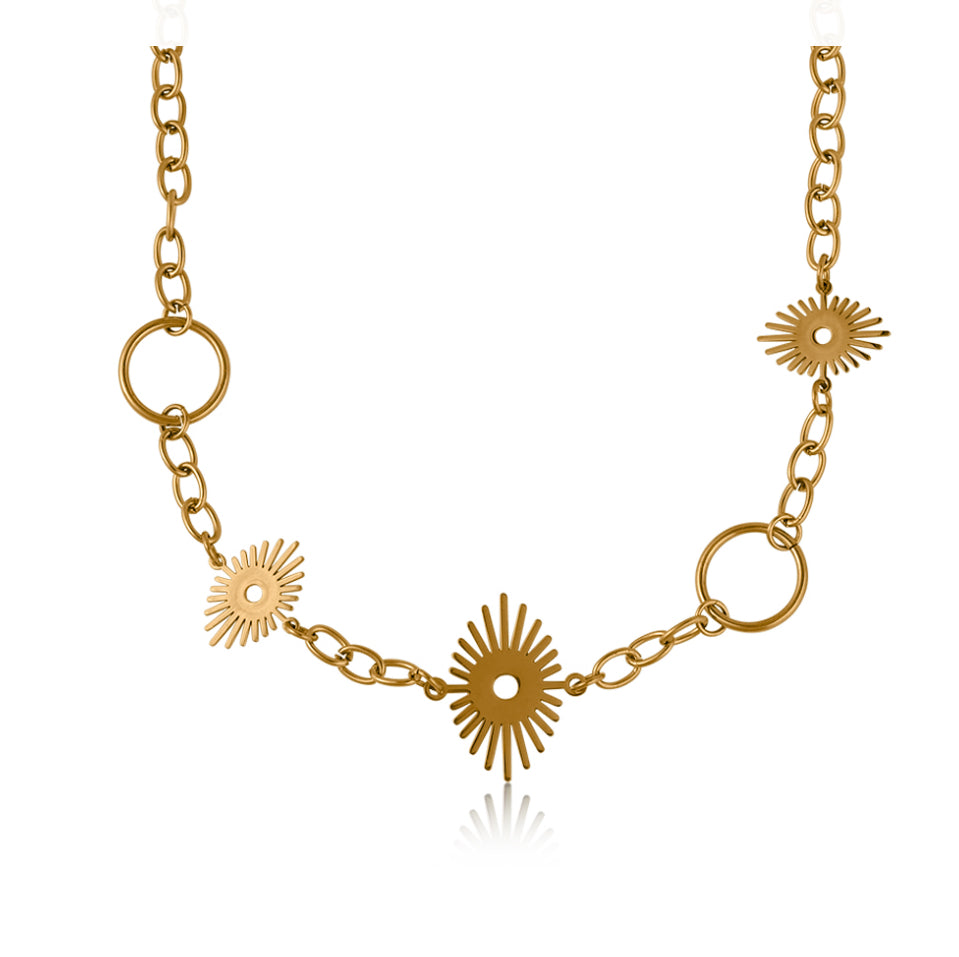 Cara Sunburst necklace - This elegant stainless steel necklace features gold details. All our stainless steel jewellery is water resistant and safe for the sea and swimming, remaining rust and tarnish free. A perfect choice for frequently worn jewellery that is subjected to daily wear and tear.