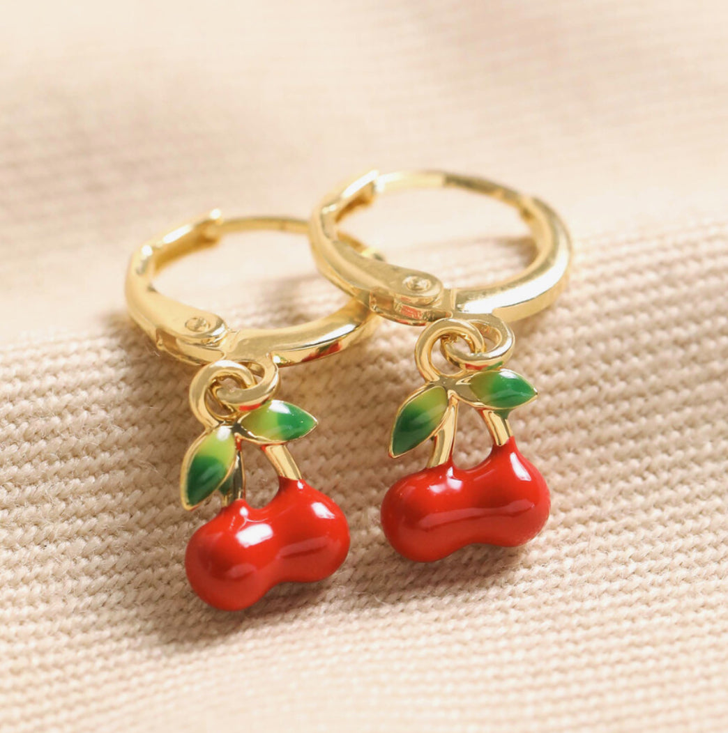 Featuring tiny red enamel cherries dangling from each polished hoop, these are perfect for anyone with multiple piercings or someone who simply adores fruity jewellery.