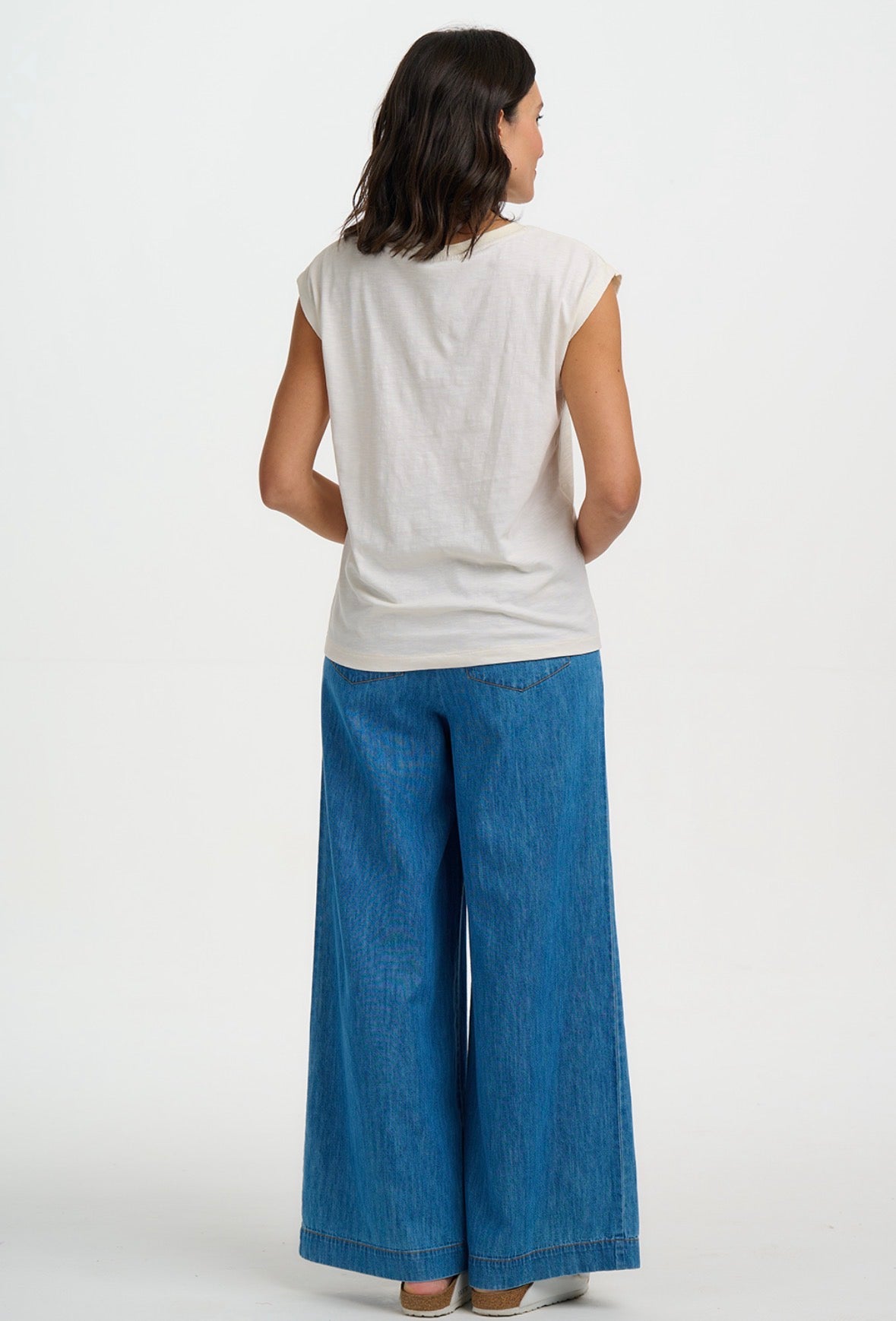 Stay effortlessly cool this summer with the Sugarhill Brighton Chrissy Sleeveless T-Shirt, designed with a boxy, oversized fit for laid-back comfort. Perfect for casual days or soaking up the sunshine, this off white tee features a playful rainbow rays print that adds a burst of fun to your wardrobe. Made from soft, breathable cotton, it pairs perfectly with your favourite denim for an easy, stylish summer look.