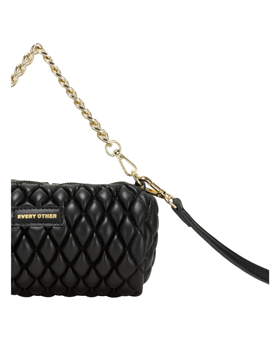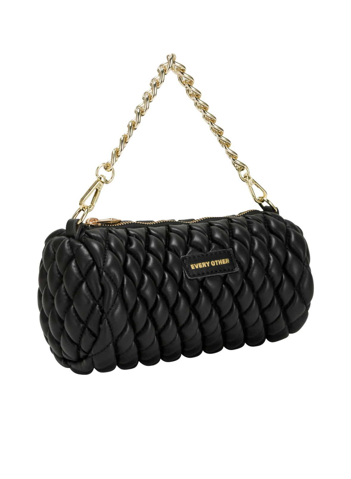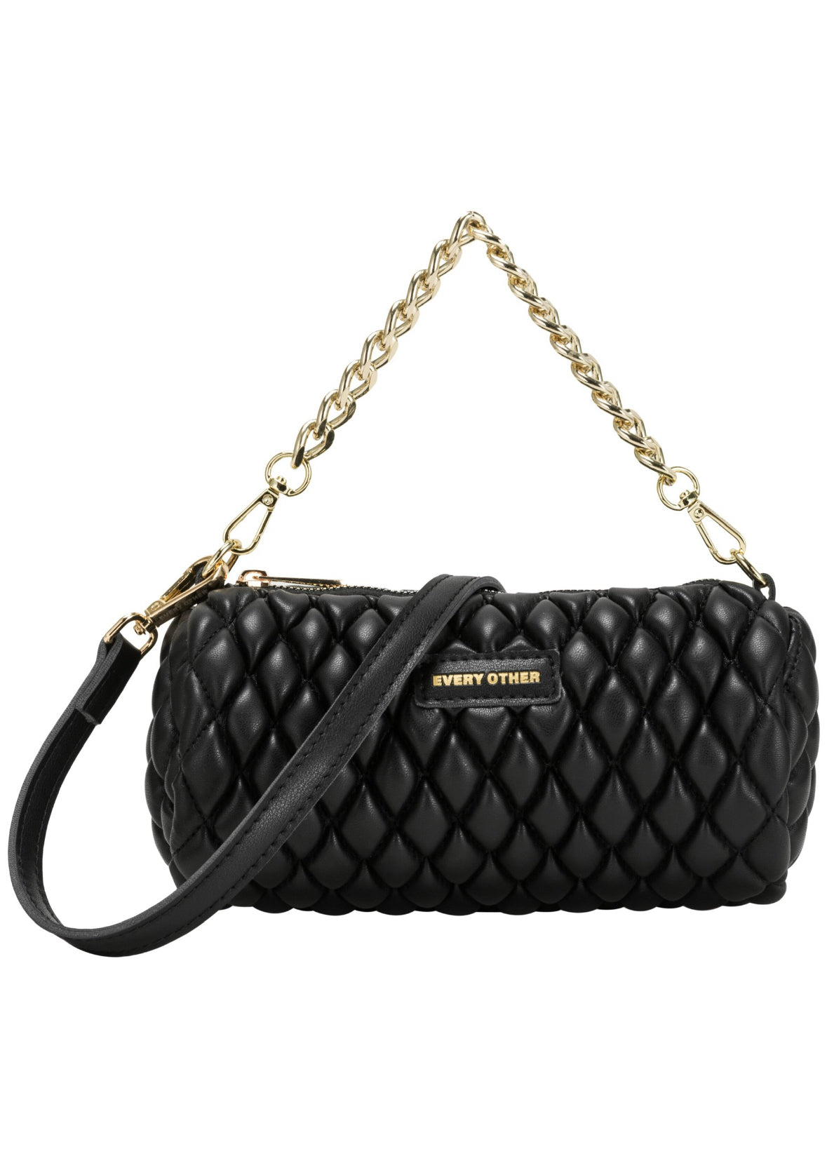 Expertly crafted with quilt detail and faux leather, the Every Other Quilt Detail Cylinder Cross Body Bag offers both style and functionality. The convenient chain shoulder strap, along with gold hardware and zip closure, make for a secure and trendy accessory. The adjustable and detachable strap adds versatility and ease of wear.