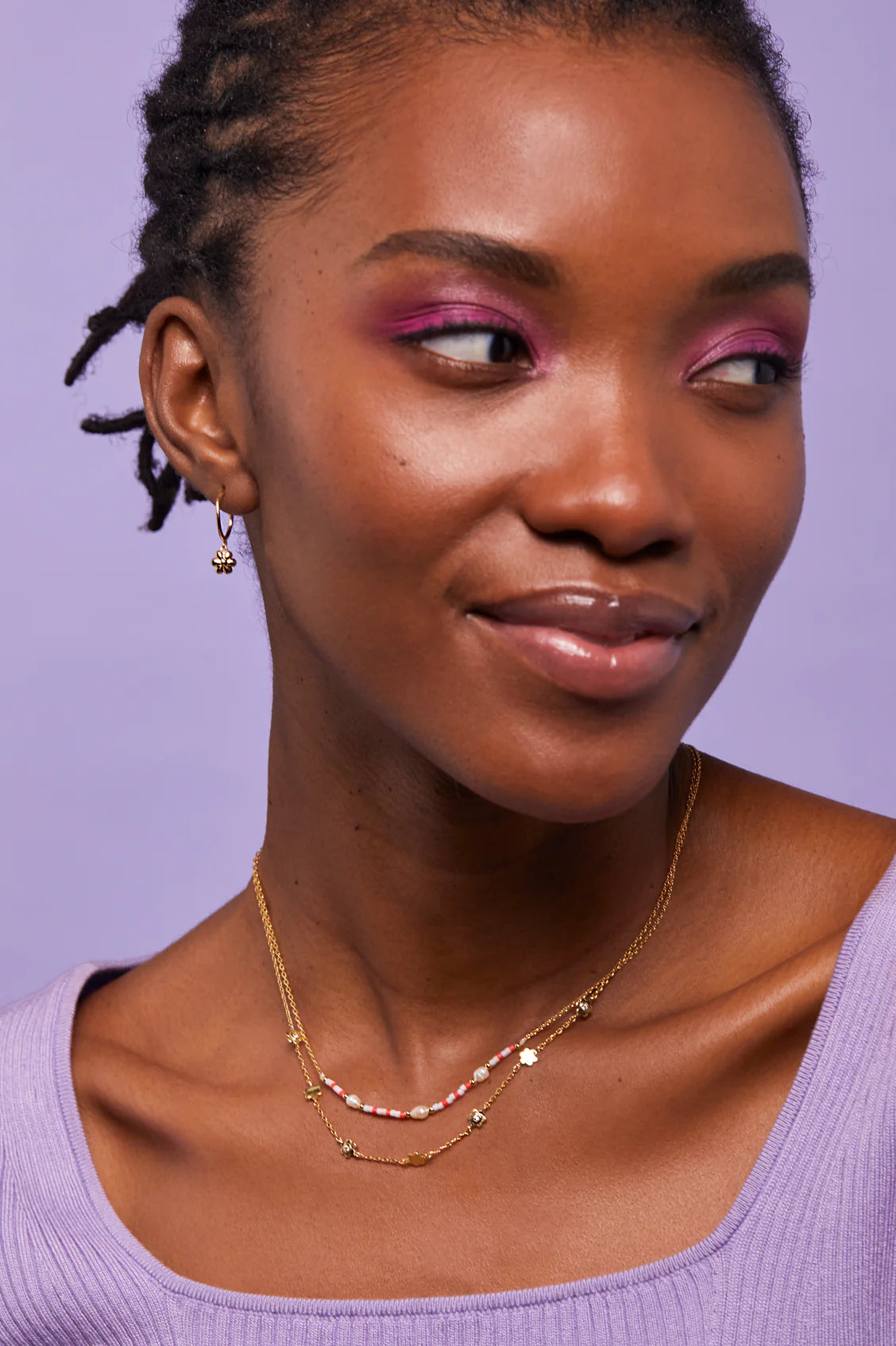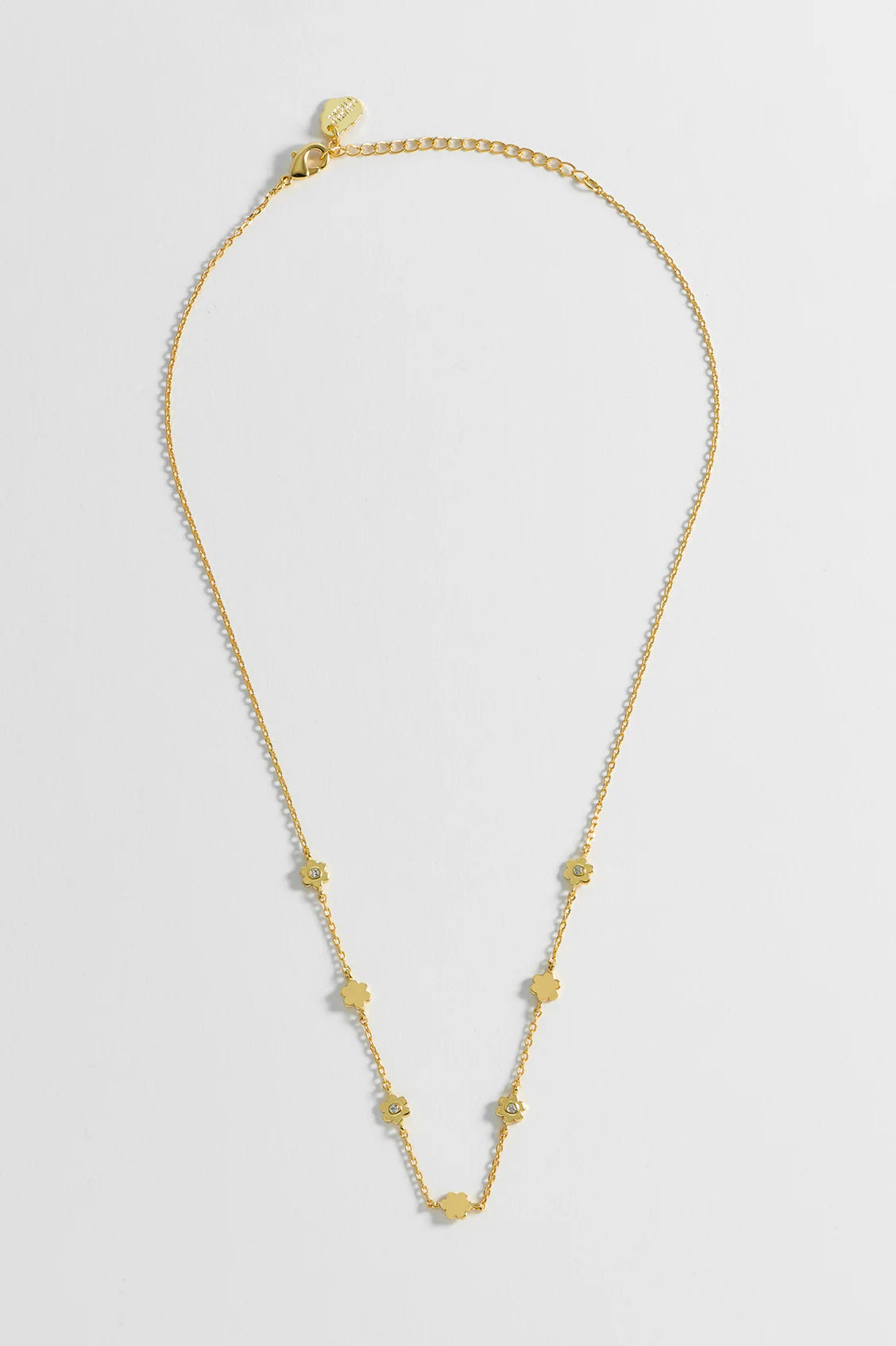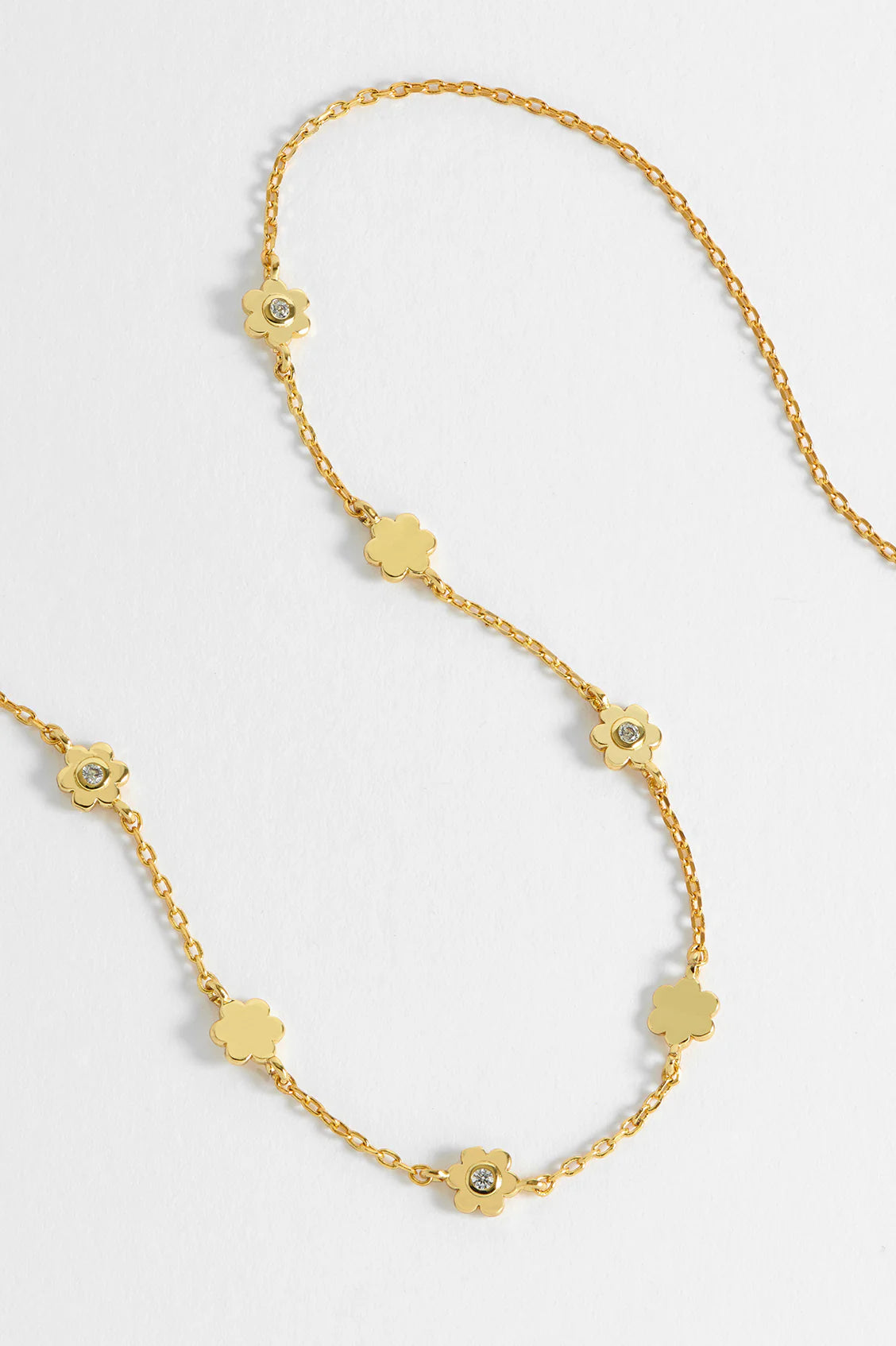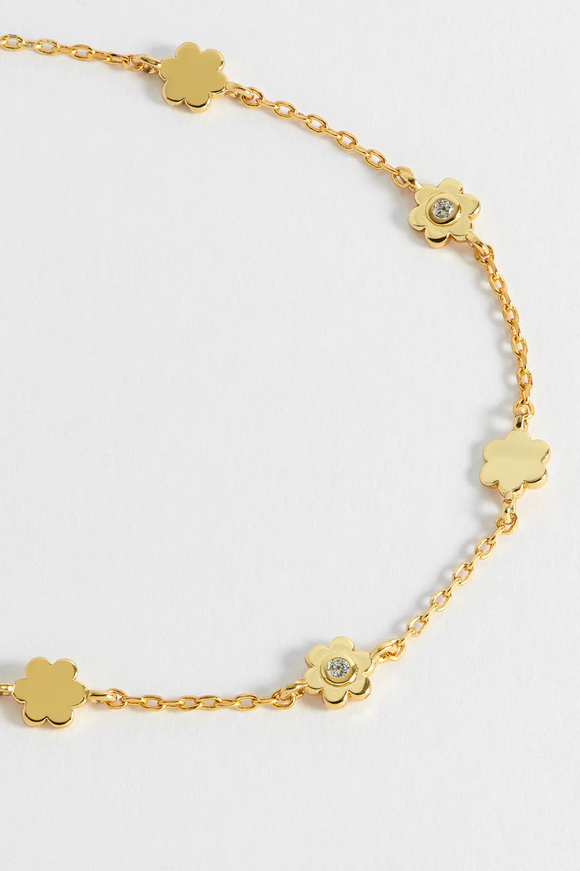 Keep blooming with our gold-plated CZ Flower Necklace. Featuring a dainty chain with a series of plain and cubic-zirconia-detailed flower charms, this necklace is perfect for everyday wear.