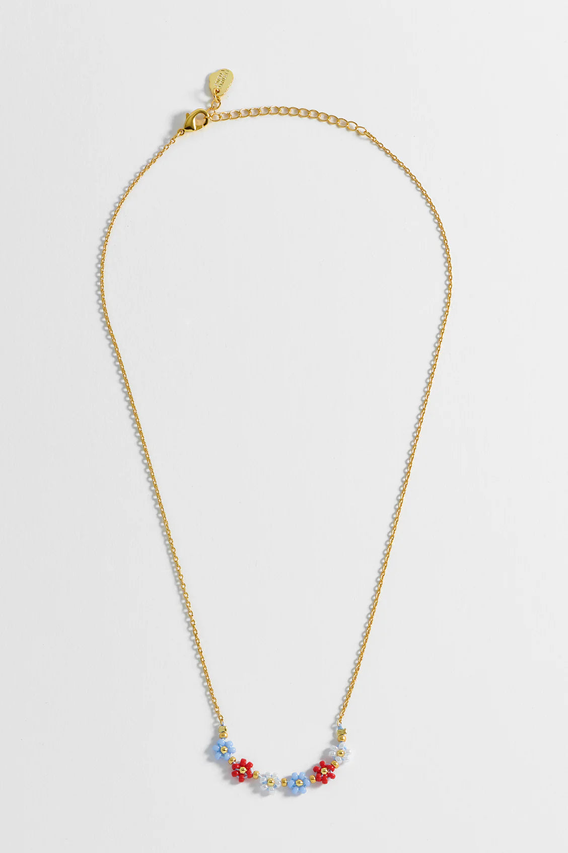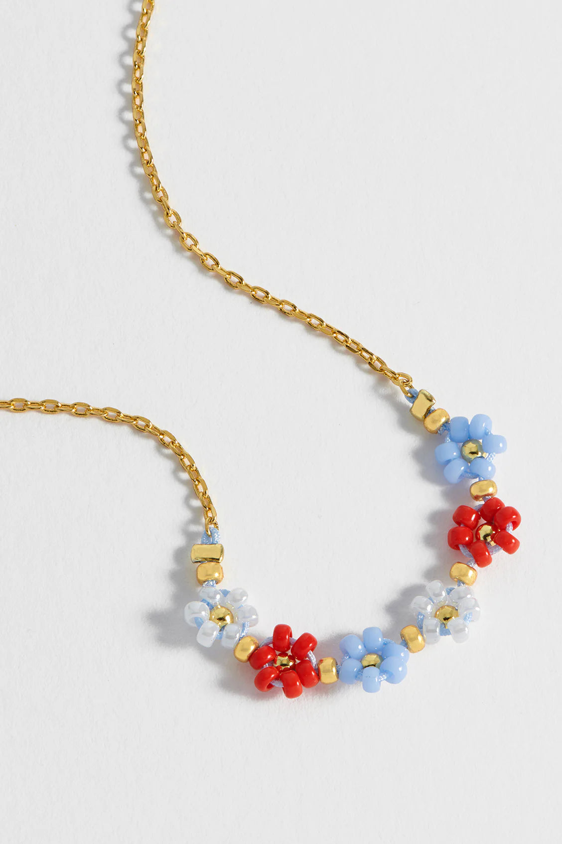 Keep blooming with our gold-plated Daisy Chain Necklace. Featuring a series of red, blue, and white beaded daisies, this bracelet gives major spring vibes. Pair it with our matching Daisy Chain Bracelet for the full look.