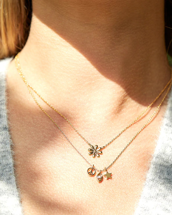 Our Dainty Daisy Pendant features a hand drawn flower charm which gives it a playful characteristic. A simple everyday necklace is key when building the foundation to your necklace stack.