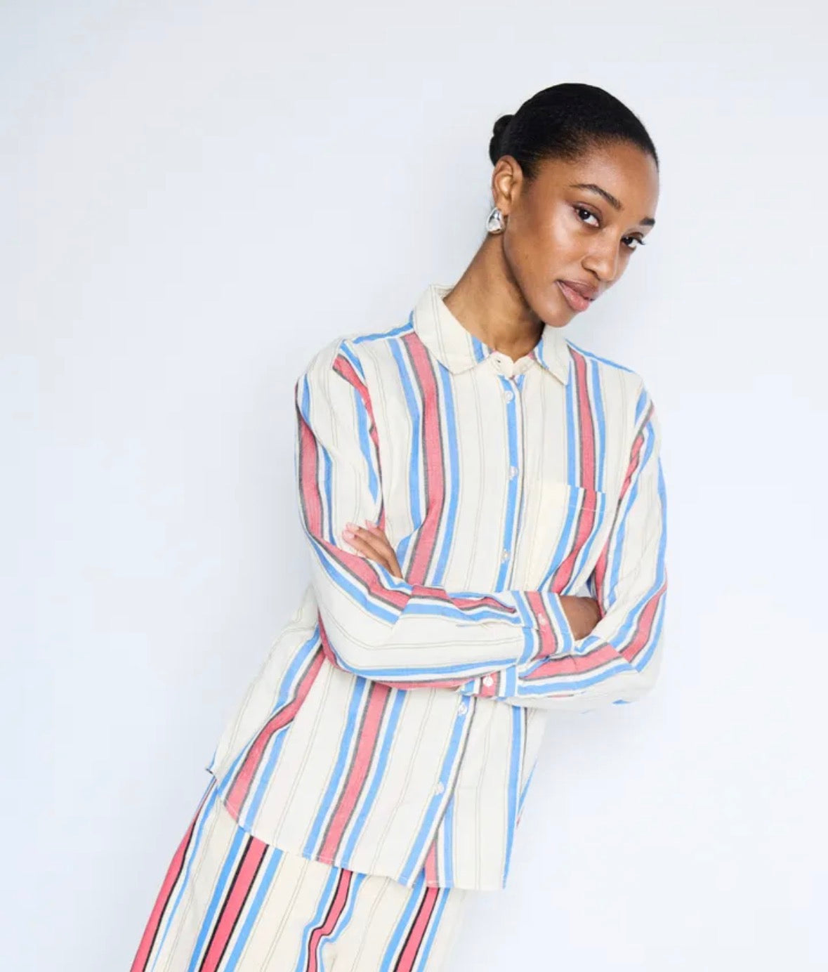 We are getting in the Spring mood with our new Ichi Fanni shirt. A soft and lightweight striped shirt, with a classic shirt collar and button down front, with button up cuffs. This cotton creation is ideal to be styled under a jumper with jeans for a classic everyday look.