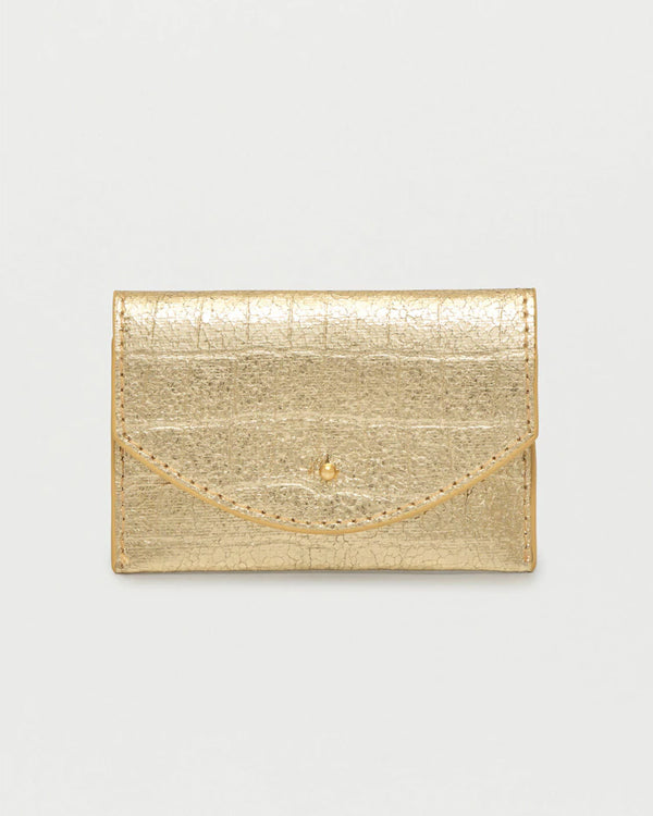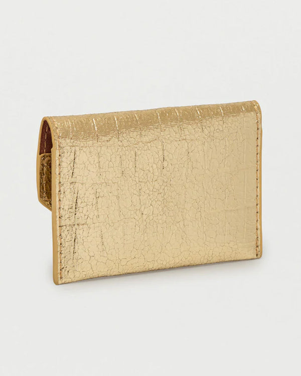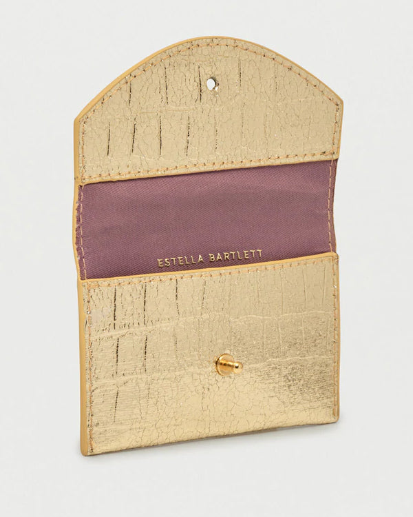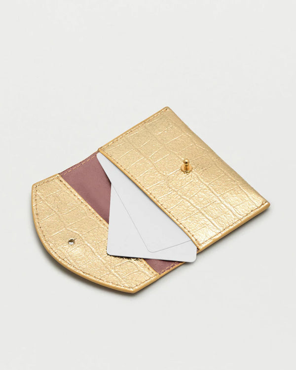 With an easily accesible stud fastening for all your on-the-go needs and finished in a croc-effect metallic gold, this card holder is as chic as it is practical.