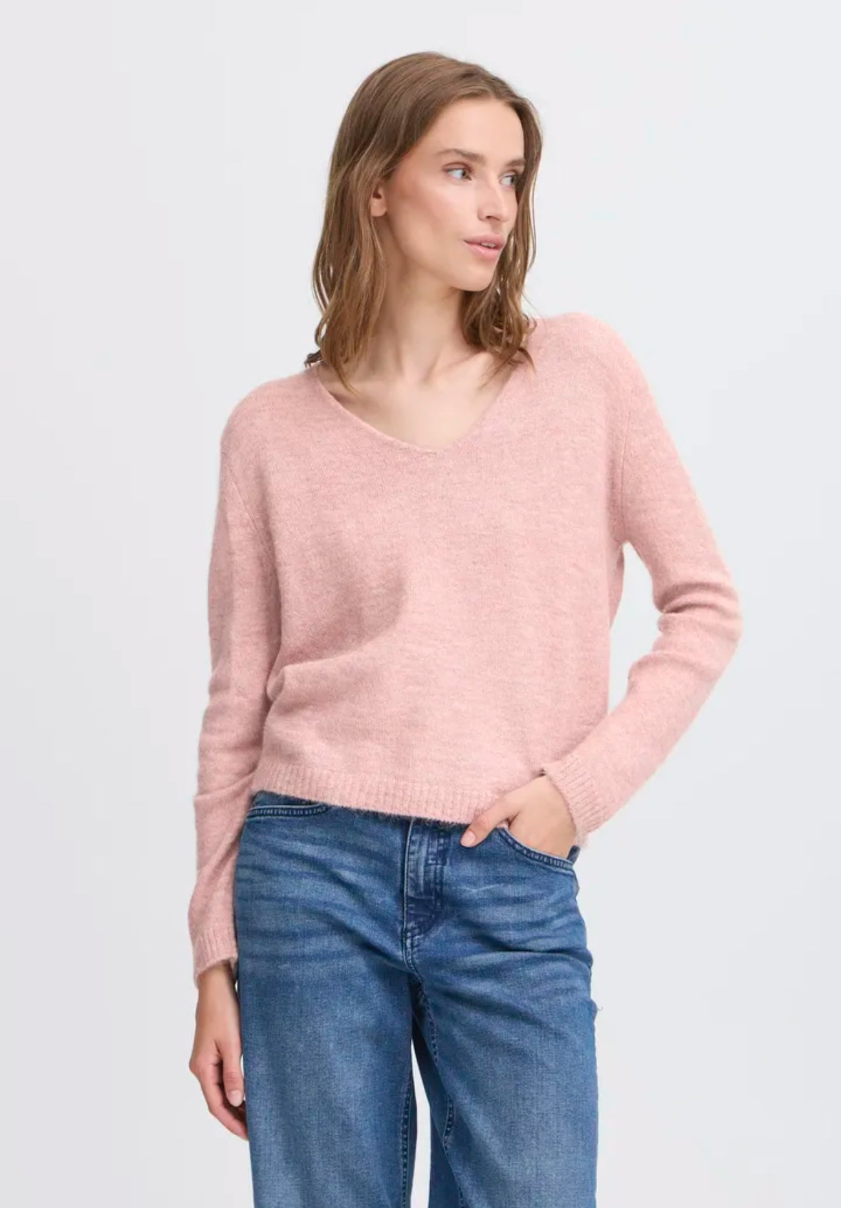 A super soft knitted jumper, our Ichi Kamara knit is a season must have. A lightweight knitted jumper that features long sleeves and v-neckline and ribbed cuffs and hemline. The perfect t knit that is great for layering over a classic shirt.