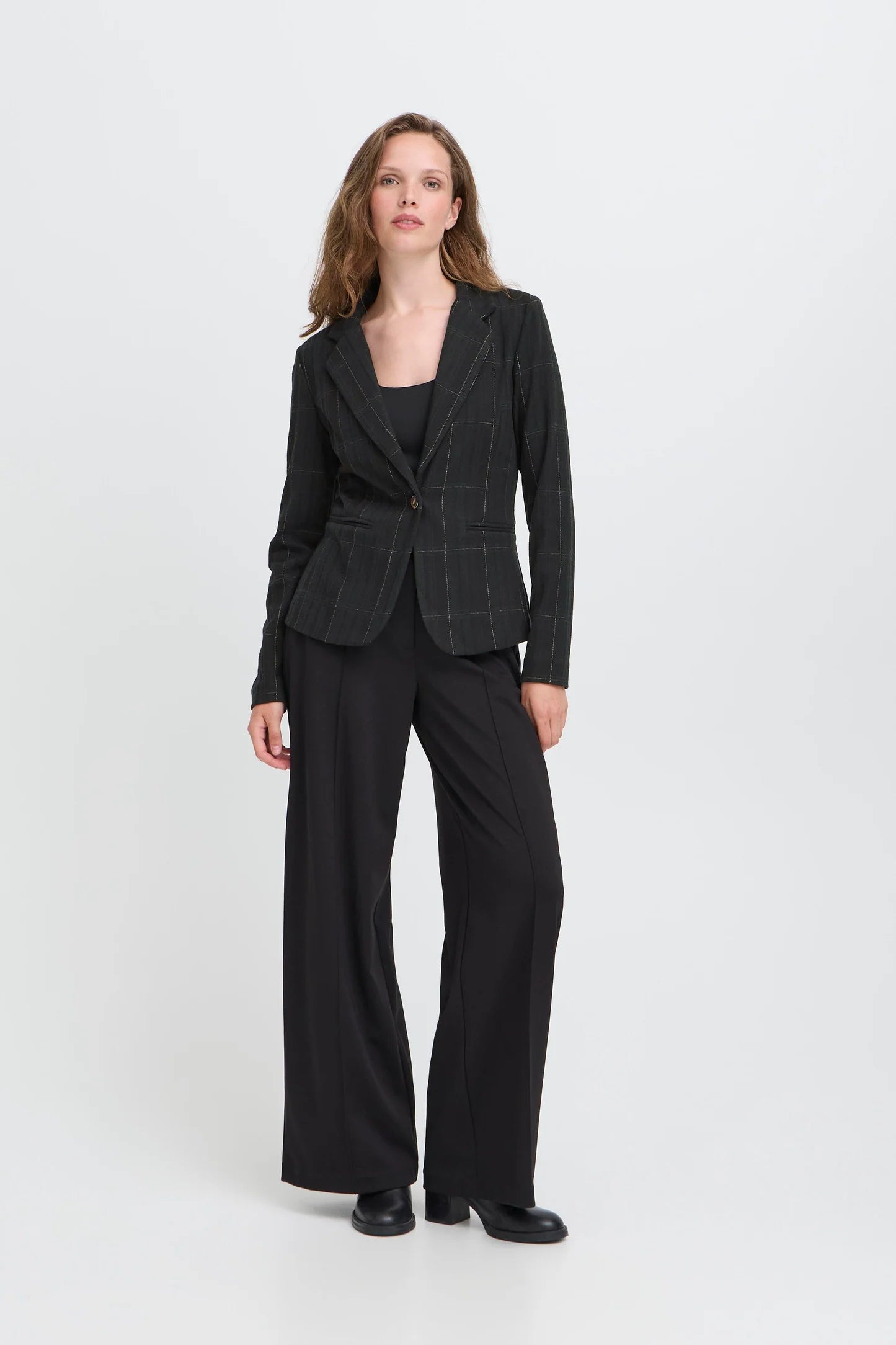 A timeless year round classic, this Ichi Kate blazer offering gives a tailored silhouette whilst keeping you looking effortlessly casual. In a new wool check colour, this flattering blazer adds a hint of sophistication to your outfit. Cut to flatter whether worn undone or with its single button done up whilst boasting a notch neckline and decorative slit pockets.