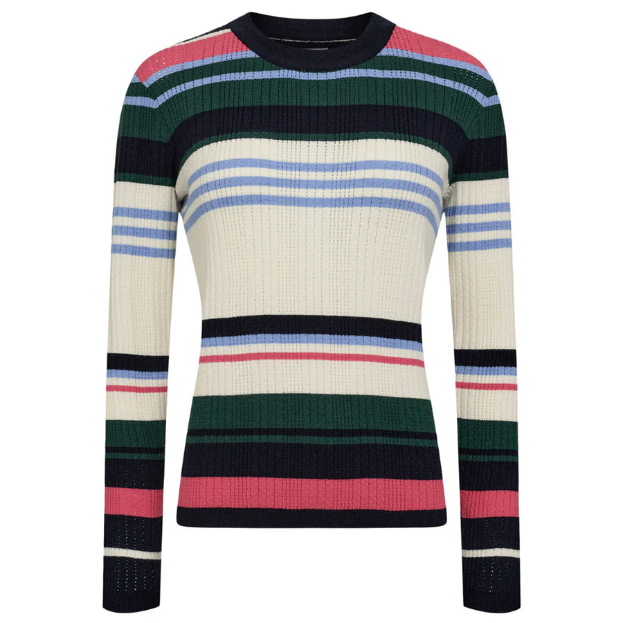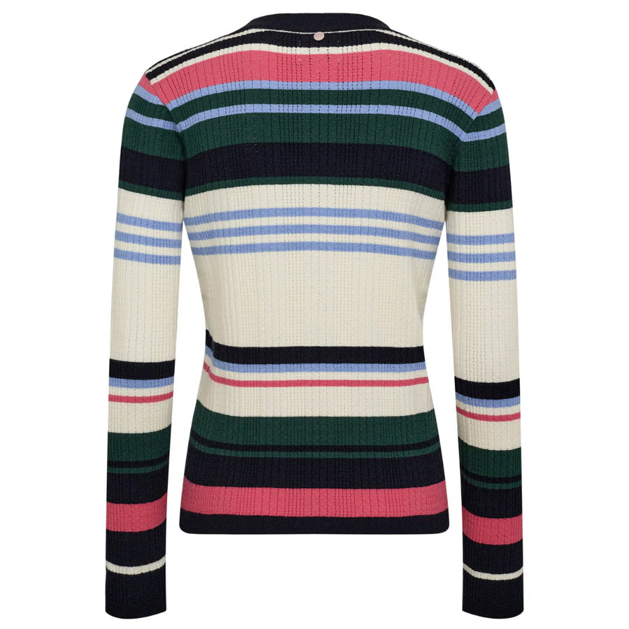 Introduce color and personality to your wardrobe with the eye-catching Kitti Pullover from Nümph. This knitted sweater features a flattering, close fit and a lively contrast stripe pattern that adds plenty of character. The ribbed texture offers extra comfort and flexibility, while the long sleeves and round neck make it easy to pair with jeans.