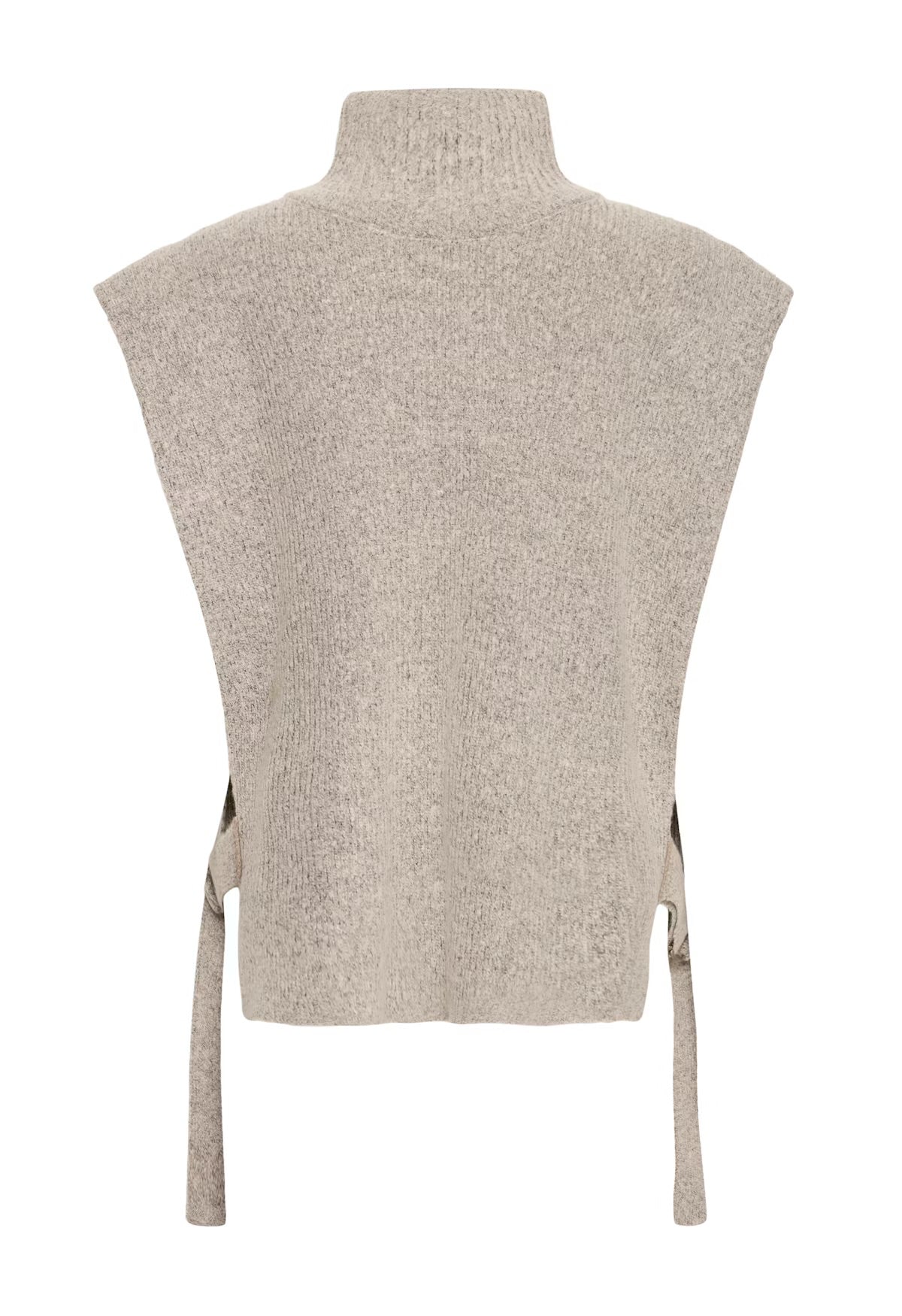 We are getting ready for the cooler weather with our new Ichi Maisie poncho. A Ribbed knit poncho vest features a high turtleneck, relaxed boxy silhouette, and side tie details. The sleeveless cut and soft, textured finish add modern elegance.
