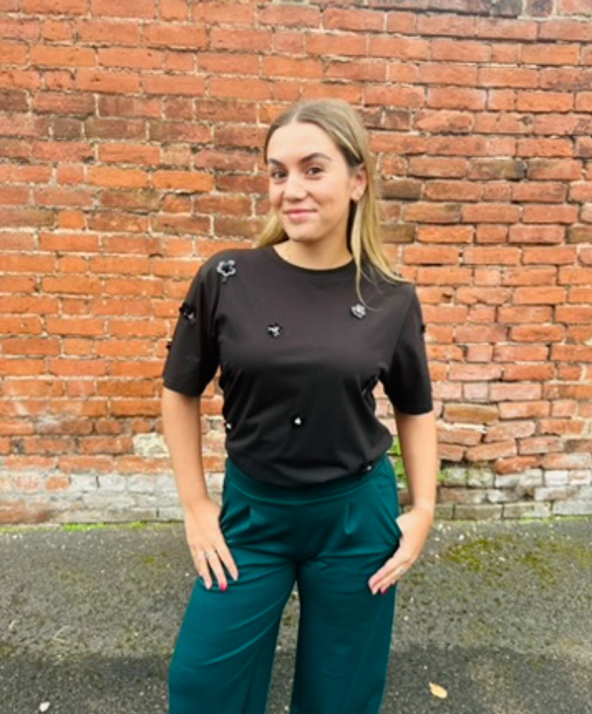 The Ichi Minaya T-Shirt combines laid-back comfort with a luxurious twist. Crafted from soft cotton, it features delicate sequin and bead embellishments for subtle sparkle. The relaxed fit and dropped shoulders make it effortlessly stylish for day or evening wear.
