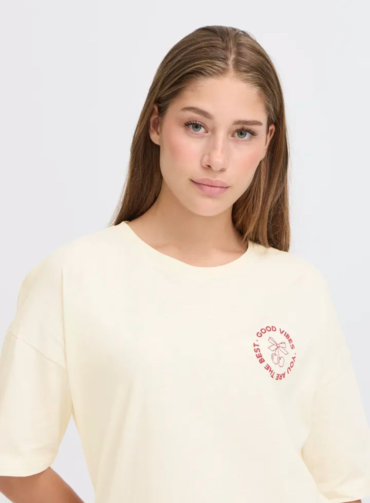 Simple from the front, statement from the back - our bee Ichi Nabino T-shirt is effortlessly stylish. A classic cream tee with a round neck and regular fit, it features empowering words in bold, colourful lettering across the back. Made for easy everyday wear, this tee brings feel-good energy to any outfit.