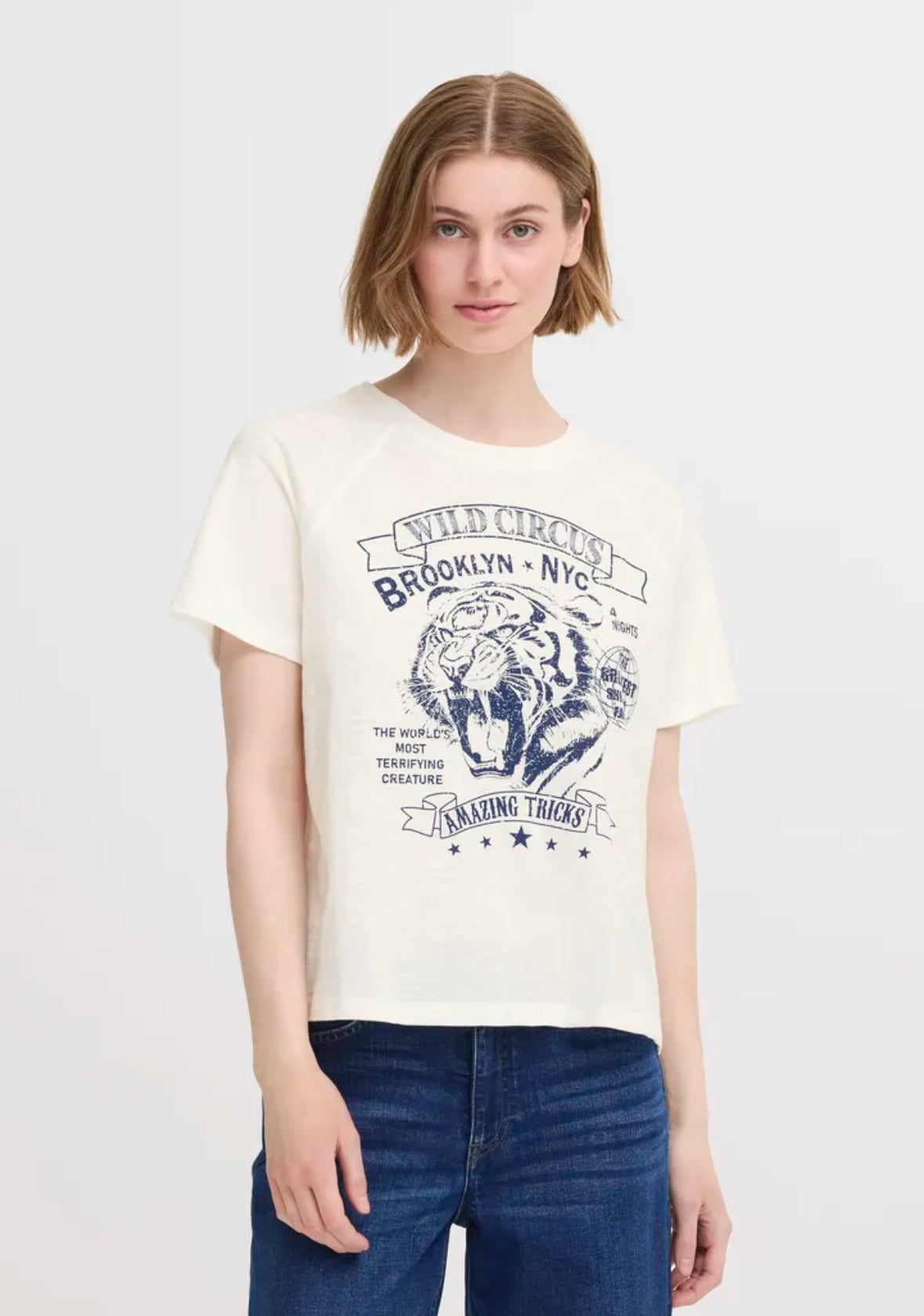 Something ichi do well is a classic tee, our Nimo t-shirt is just that. A classic cut white t-shirt with sleeves and rounded neckline. Featuring a striking tiger motif to the front.