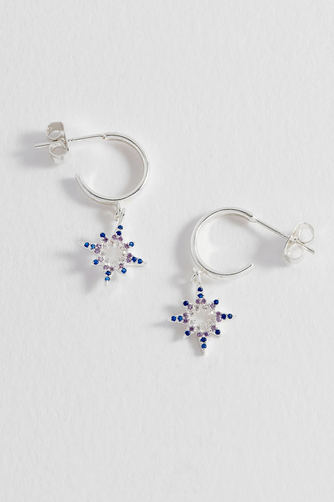Our North Star Hoop Earrings feature silver-plated open hoops with delicately designed mixed CZ star charms. Why not complete your look with the North Star CZ Pendant for a shimmering, full look.