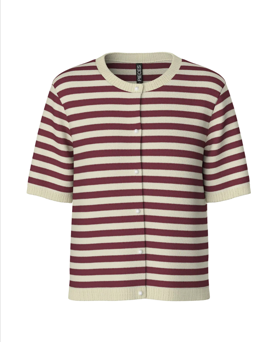 Our new Pieces Orina knit is perfect for the in-between time of year. A super soft, yet lightweight knitted cardigan that features a round neckline, short sleeves and horizontal cream/ hot fudge stripe; all finished off with a decorative pearl button. Can worn worn open or closed with your favourite denim.