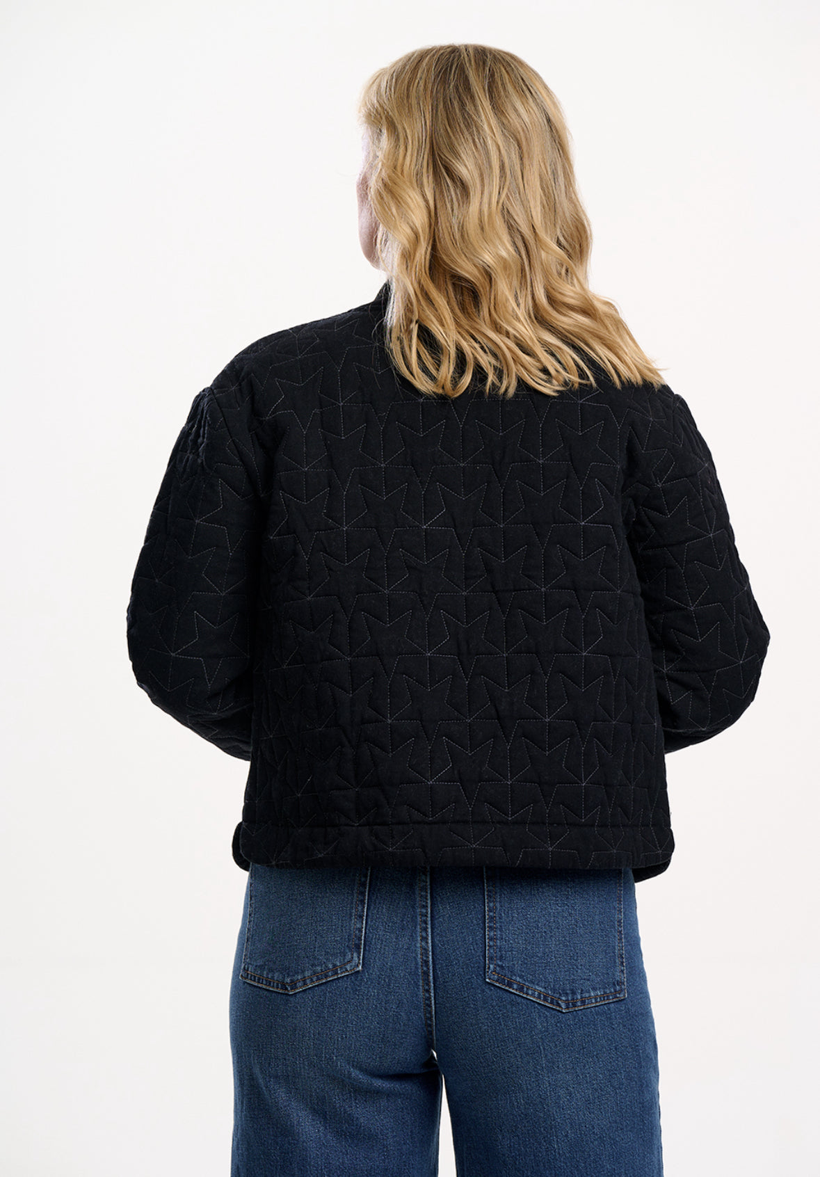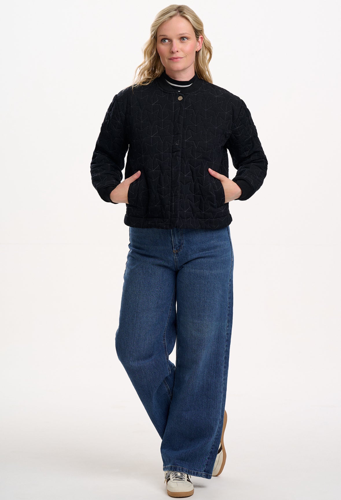 Fresh for 2025, the Reagan Quilted Bomber Jacket blends effortless style with cosy comfort. Designed with a looser fit, elasticated cuffs, it delivers a relaxed yet flattering silhouette. Popper fastenings add a laid-back, sporty touch, the all-over grey star-shaped quilting on a classic black base creates a standout textured finish. Perfect for layering over casual looks, this quilted bomber jacket is your go-to for transitional weather.