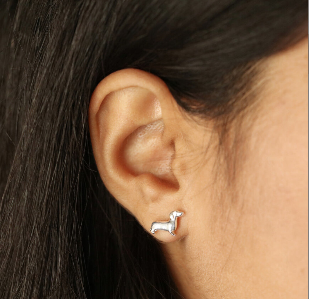 Featuring two shiny sausage dogs on hypoallergenic sterling silver posts, these earrings are perfect for the dog-obsessed. Simple in design, they're ideal for layering with other silver jewellery and would look great paired with other silver studs and hoops for a fun, curated look.