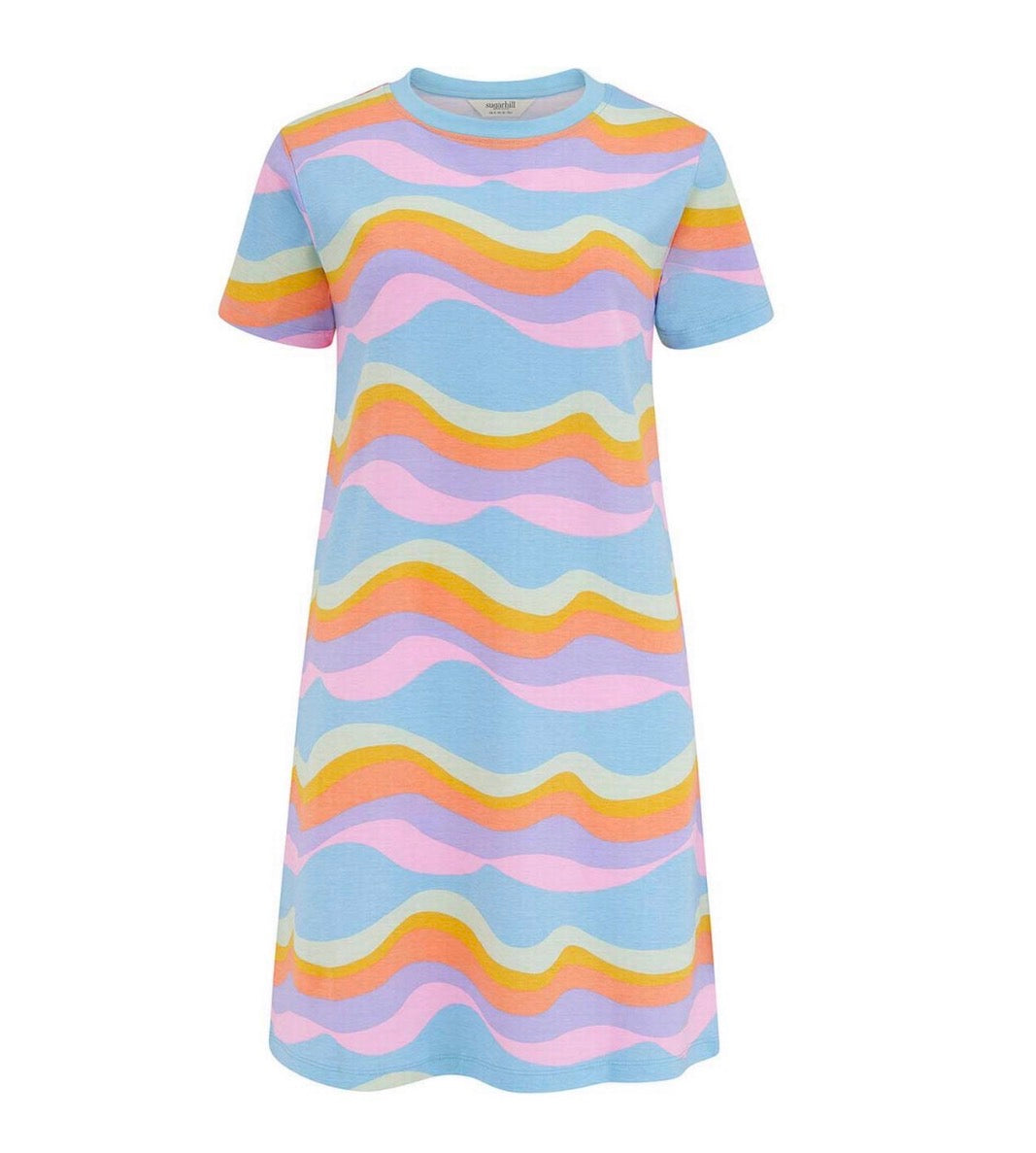 Meet the Sia T-Shirt Dress from Sugarhill Brighton, the ultimate throw-on-and-go style. With its relaxed A-line shape and short sleeves, it’s designed for easy, everyday wear that still feels fun. Made from soft cotton jersey, this dress showcases a soft multicolored wavy design. Making this a playful, comfy and effortlessly cool.