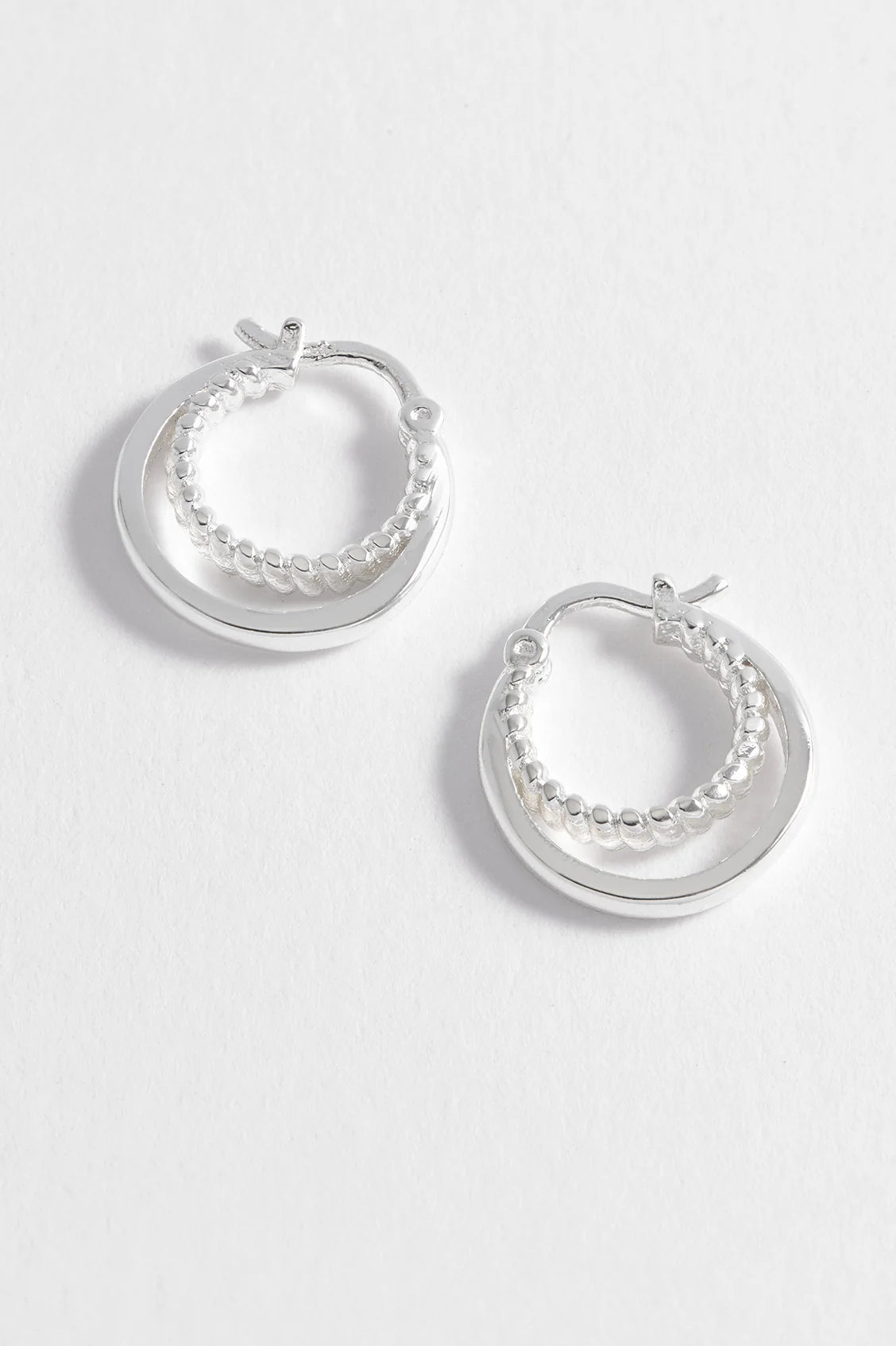 The classic hoop earring, elevated. Add texture and dimension to your look with our silver-plated Twisted Double Hoops. These earrings are versatile and can be styled with a variety of looks.