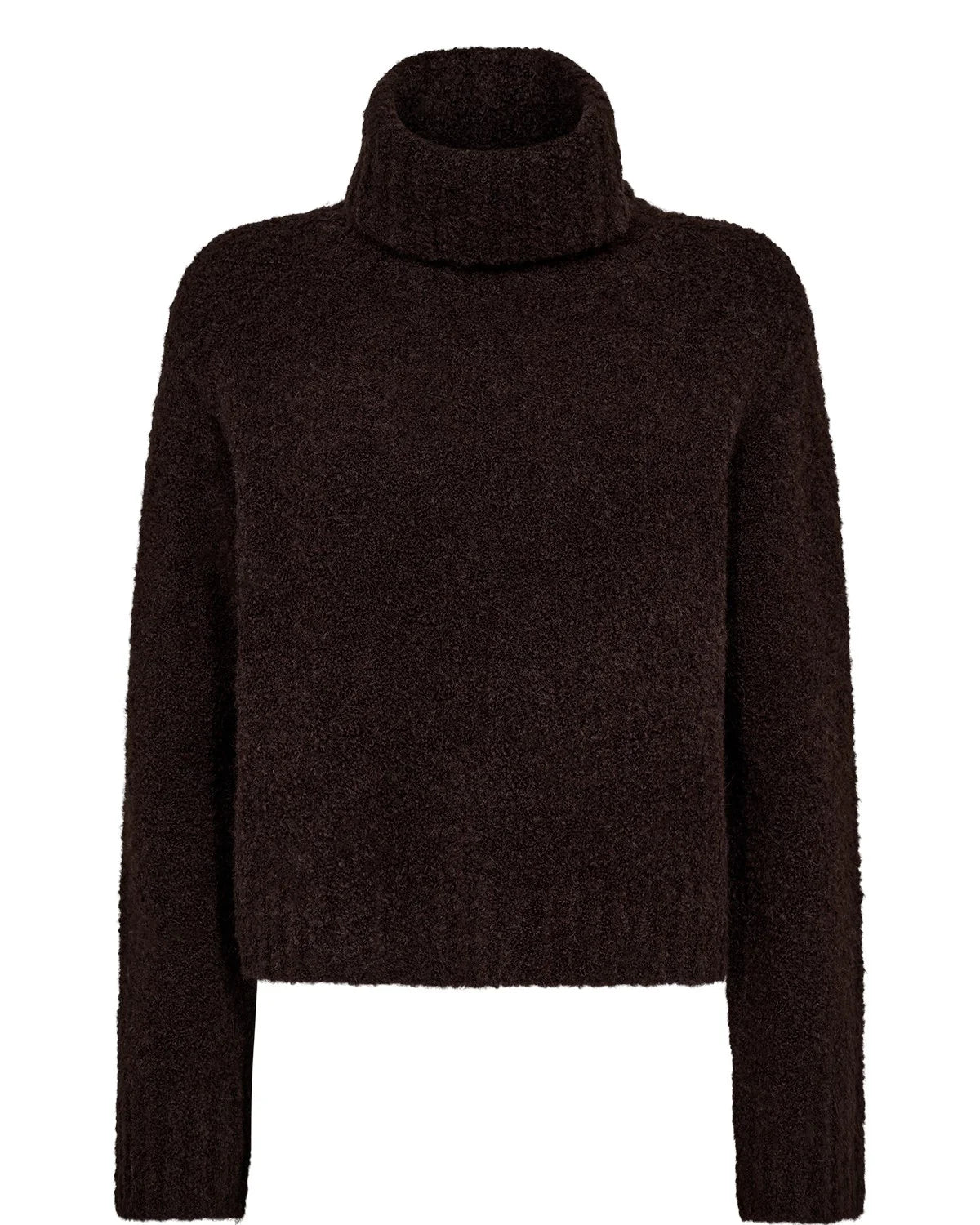 Time to get cosy with our Numph Willa jumper. A super soft jumper that features a high neck, with long sleeves, all finished off in a rich chocolate shade. The slightly cropped length makes it the ideal jumper to wear with high waisted jeans, skirts and over dresses.